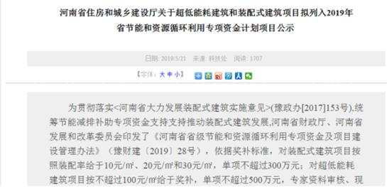 另外,对建筑面积3万平方米以上的装配式住宅和2万平方米以上的装配式公共建筑给予50元/平方米的市财政资金的补助,单个项目补贴不超过500万元。